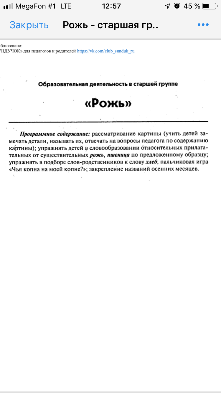 Образовательная деятельность в старшей группе «Рожь»