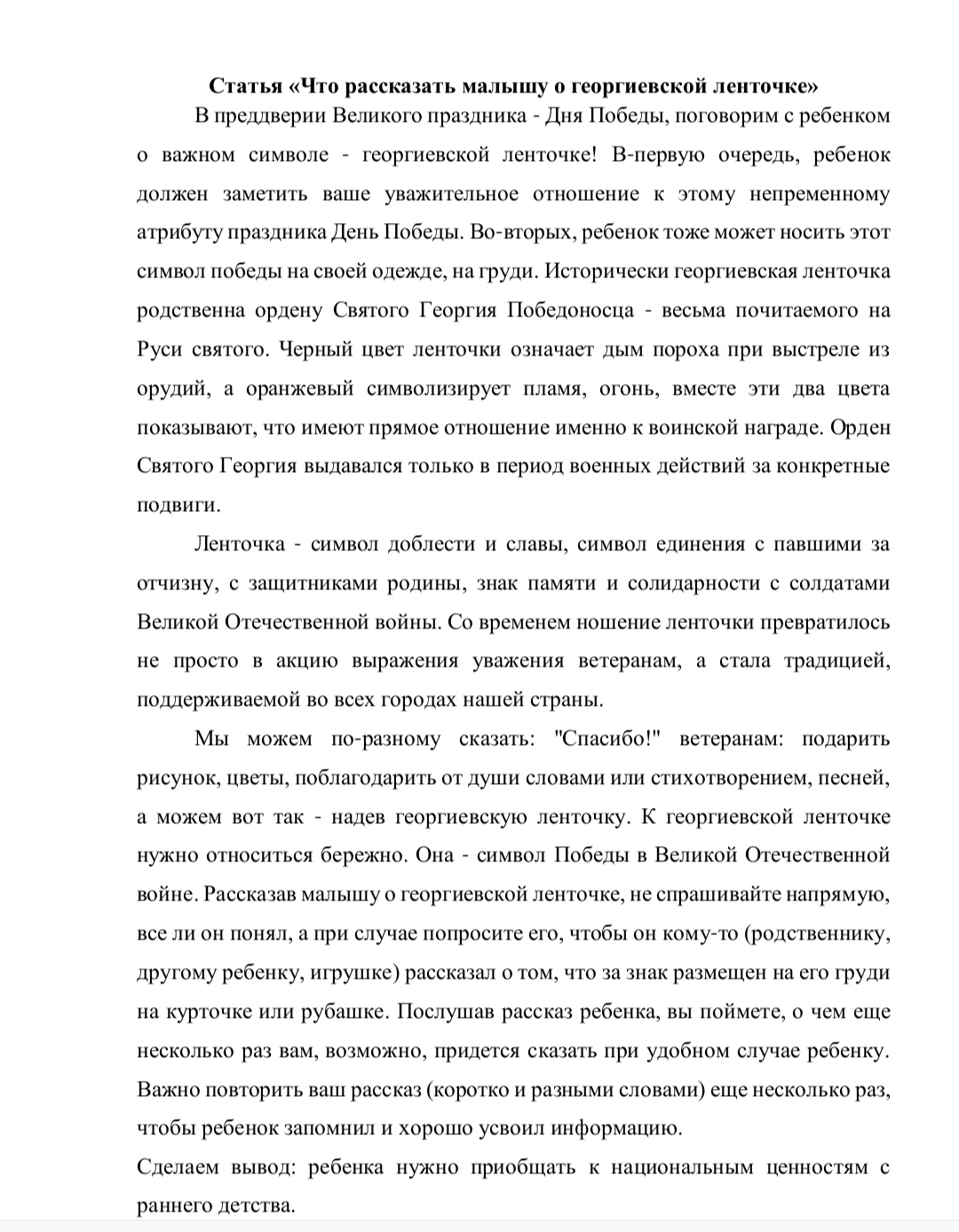 Что рассказать ребёнку о Георгиевской ленточке