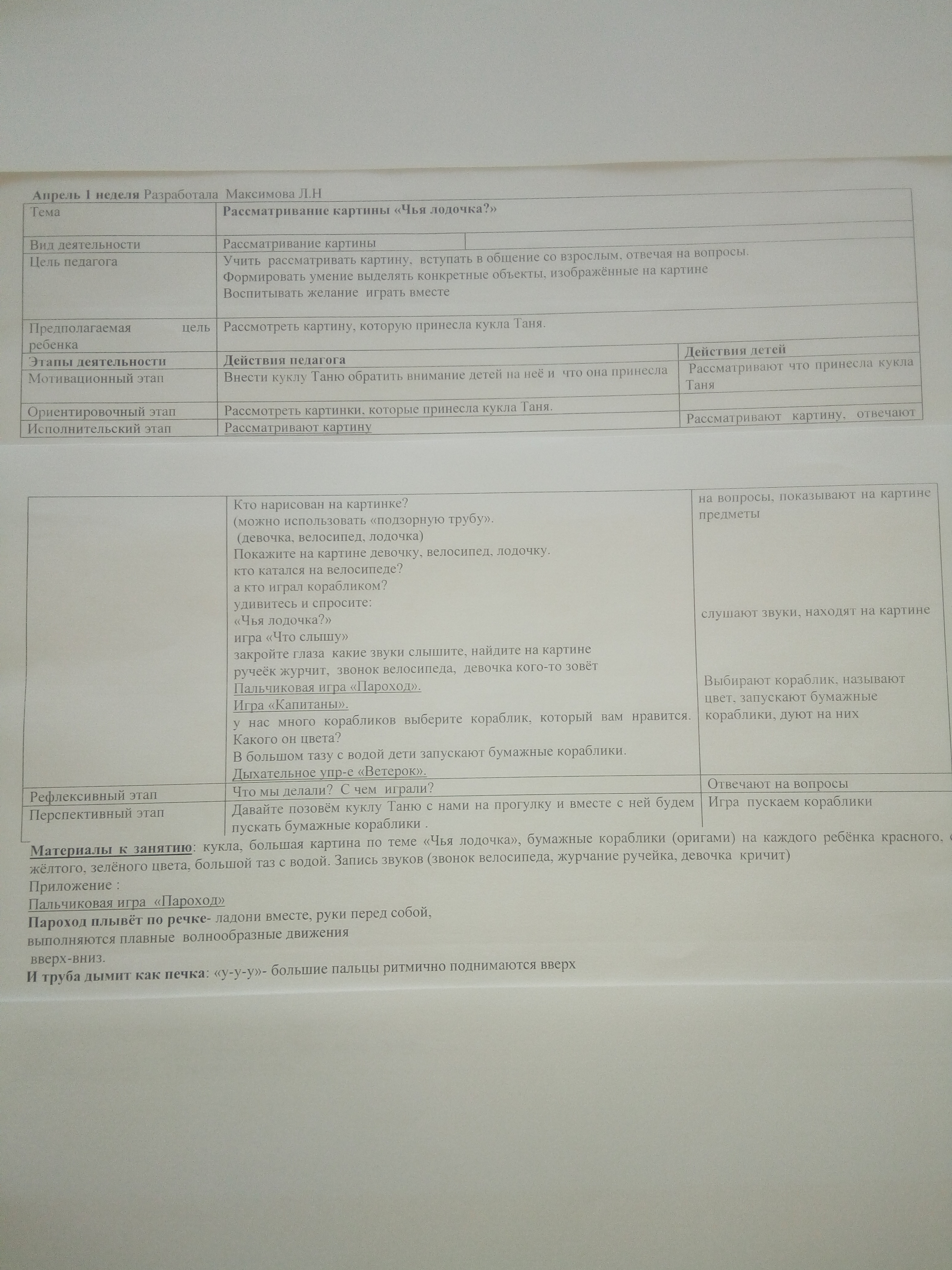 Рассматривание картины "Чья лодочка?"