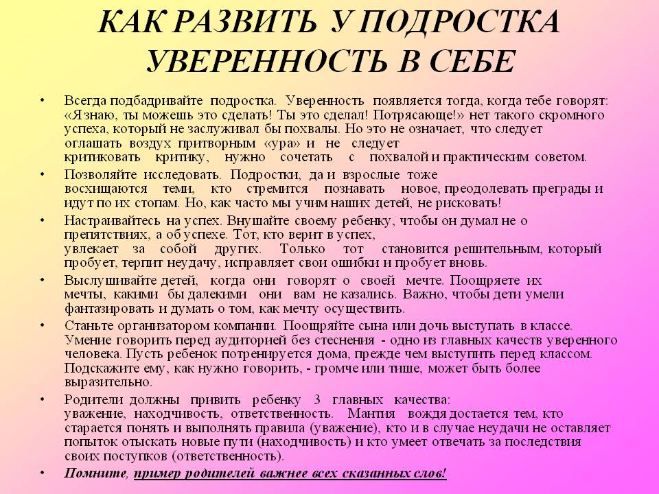 родительское собрание по теме:"Как помочь подростку обрести уверенность в себе"