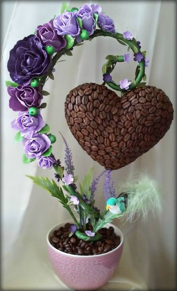 "Красивый топиарий из кофейных зерен"